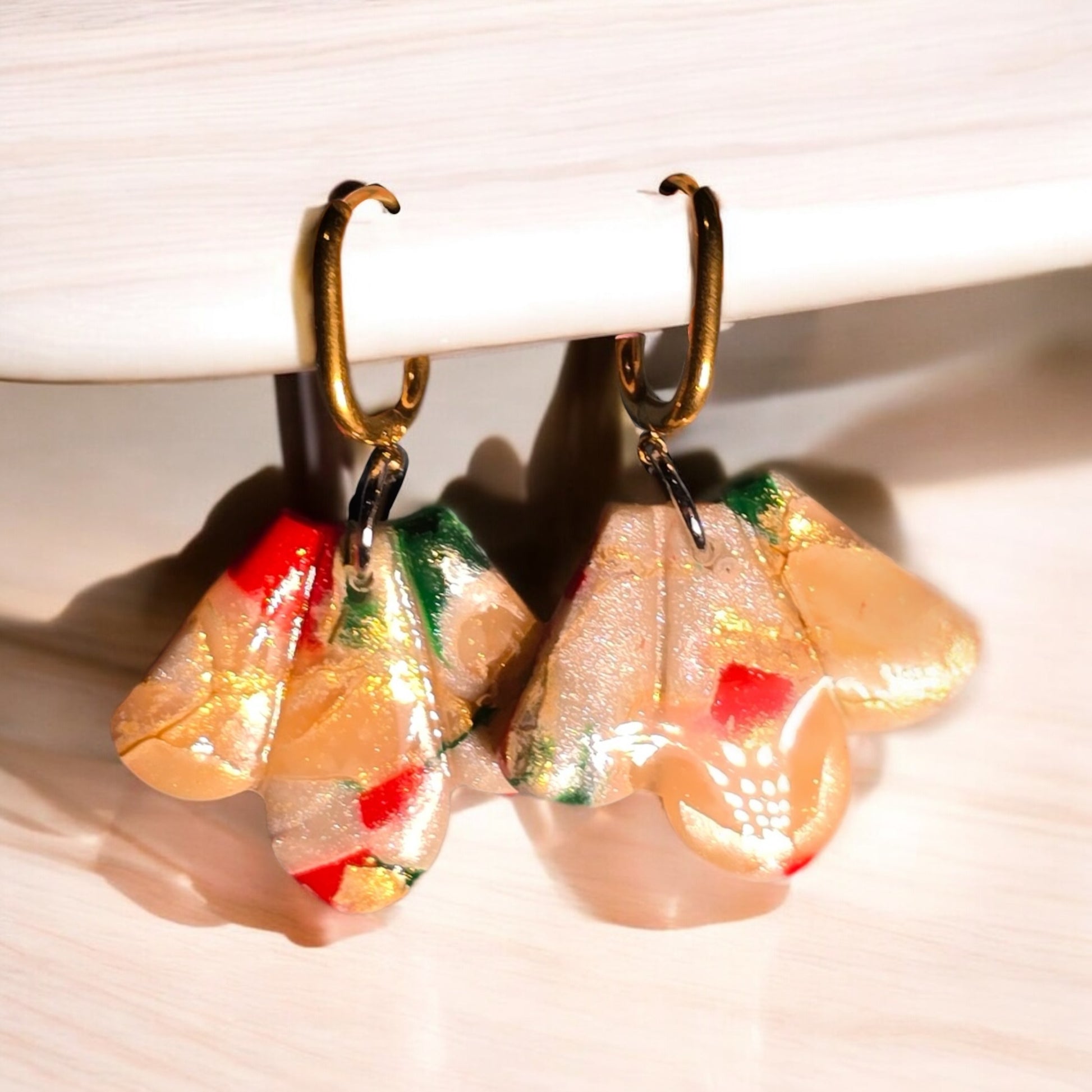 Embrace the season with Winter Petals — festive earrings blending red, green, pearl white, and cream. Finished with elegant gold details, they bring a warm, sophisticated touch to any holiday look. Light, playful, and perfect for adding a hint of joy to every outfit.